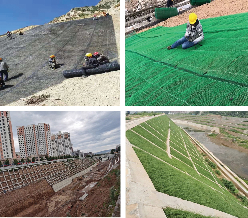 三維結(jié)構(gòu)與植物錯(cuò)綜復(fù)雜的根系形成一個(gè)‘捕獲機(jī)制及侵蝕控制系統(tǒng)’,對(duì)土壤起挾持作用,加強(qiáng)植物根系對(duì)表面土壤的‘抓付能力’,限制土壤顆粒的運(yùn)動(dòng),達(dá)到植被茂密、根系牢固的目的,讓這個(gè)系統(tǒng)在大效益上減小因自然原因造成的水土流失。